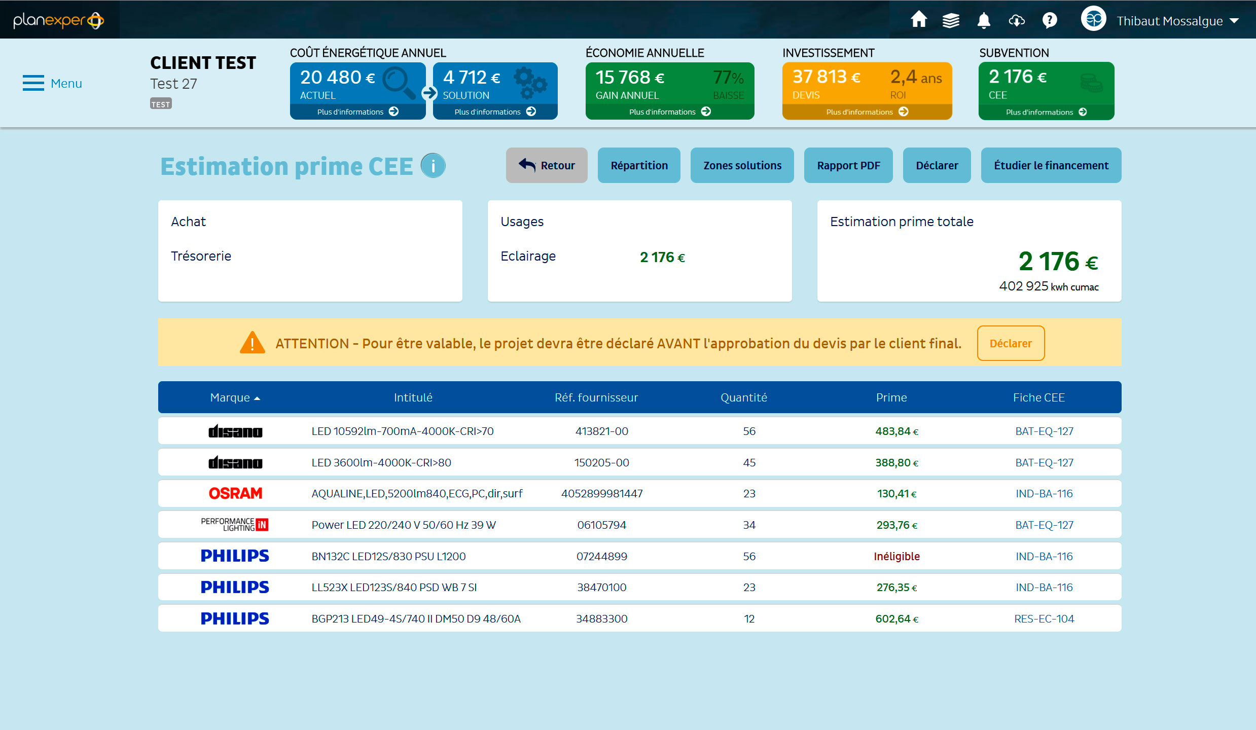 - Estimez automatiquement le montant la prime CEE liée à la solution retenue